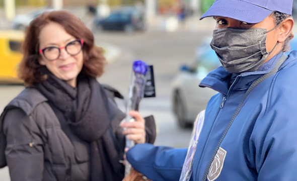 Eden Auto Peugeot distribue des roses à l’occasion de la Journée internationale des droits de la femme avec Keemia Bordeaux.