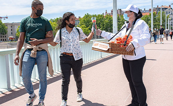 En effet, afin de communiquer de manière originale durant ce jour spéciale de la fête des mères, Keemia Lille lance une campagne de distribution de roses. Nos animatrices habillées en tenue logotypées se sont rendues dans les rues de Lille munies de leurs panières en osier. Nos hôtesses ont alors distribué main à main des roses aux passantes ainsi qu’une carte com.