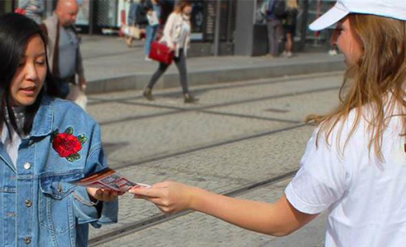 – d’ un dispositif street marketing via la distribution d’imprimés publicitaires de la main à la main en tenues logotées,