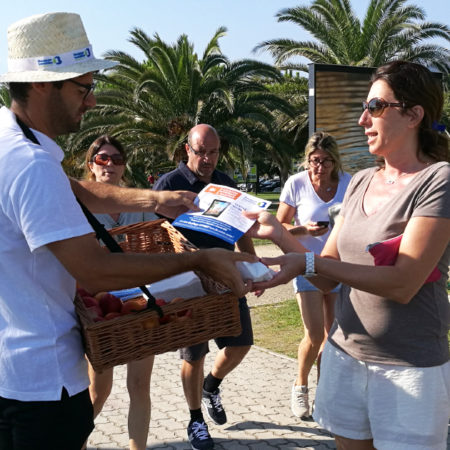 Bouygues Immobilier Roussillon communique sur sa nouvelle résidence à Saint-Cyprien via a dispositif de distribution de fruits de saison et de flyers.