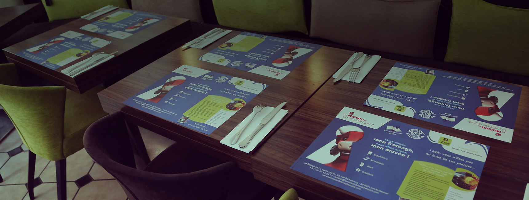 Impression en quadri sur papier PEFC 100% recyclable. Encres agréées contact alimentaire. Vérification du rendu de vos visuels par nos graphistes avant impression.