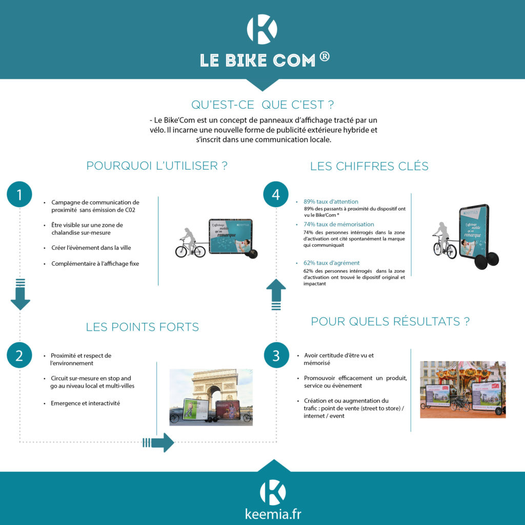 Le Bike’Com est un concept de panneaux d’affichage tractés par un vélo qui s’inscrit dans la nouvelle ère de la publicité extérieur respectueuse de l’environnement.