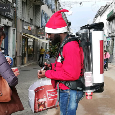 A l’occasion de Noël, SFR souhaite communiquer dans la proximité en multi local via une diffusion street marketing et une distribution de boissons en ville.