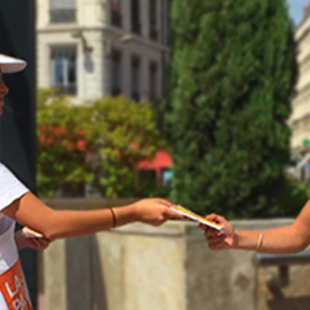 La Part Dieu fait une distribution de chéquiers de réduction en street marketing pour informer le public des bons plans valables dans 142 boutiques.