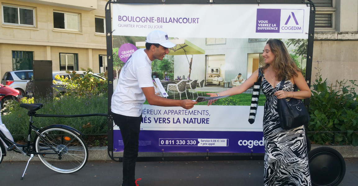 Bike'Com : Affichage publicitaire mobile, le velo publicitaire - Keemia Paris Agence marketing local en région Île-de-France