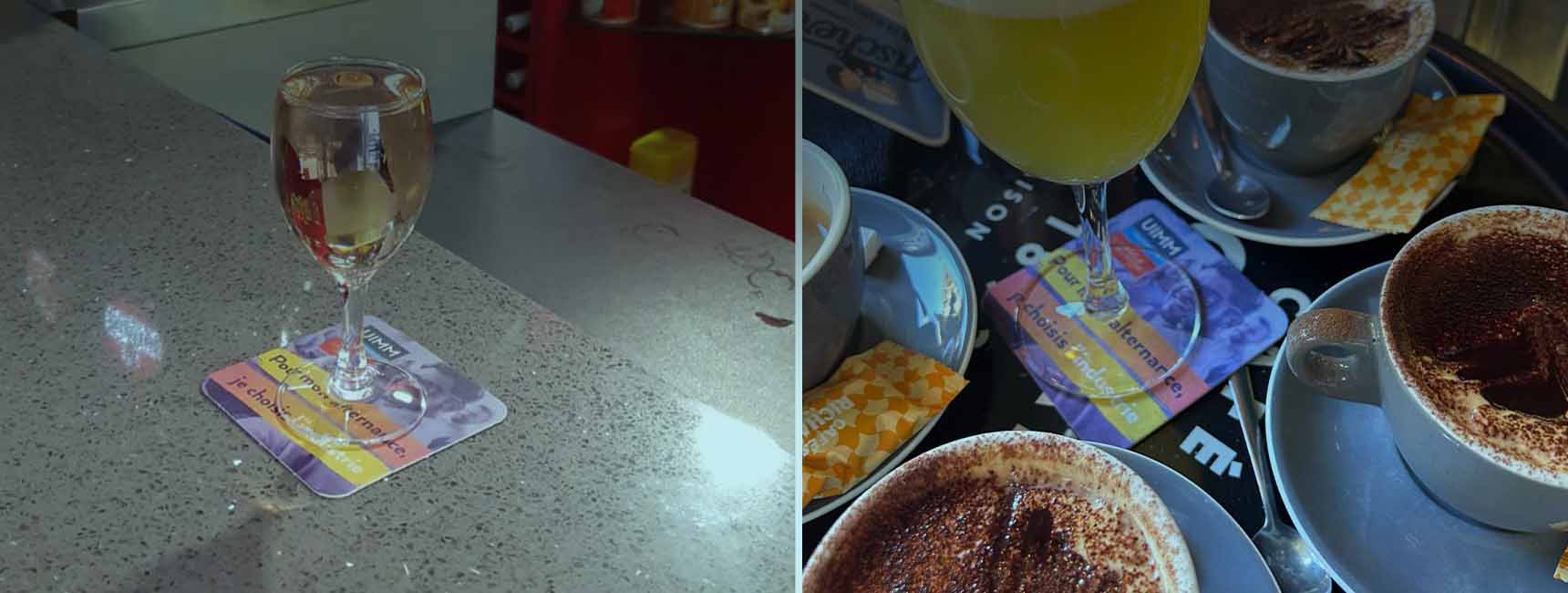 Le choix des sous-bocks personnalisés pour cette opération terrain a été un succès car ce dispositif terrain est un moyen de communication efficace, captivant l’audience pendant des moments de pause et de détente dans un contexte festif favorisant ainsi la mémorisation.